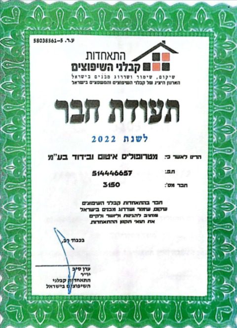 החברה פועלת בהתאם לתקני מכון התקנים הישראלי ומשלבת בין חדשנות טכנולוגית, ניסיון עשיר וסטנדרטים בלתי מתפשרים.